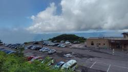 1時間30分くらい歩いて09:45ごろに8合目に到着。ここまで下ってくる人が2人いただけ、どちらもトレランしているような感じの人だった。駐車場は車がたくさん止まっていて、リフトに乗っている人とか子連れの家族がたくさんいた。