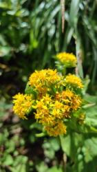 中腹あたりで硫黄の匂いもしてきて嶽「温泉」という名前のとおりだと感じた。臭いというと堆肥というかフンのような臭いもしていて鹿か何かだろうか。花も何種類か咲いていてとりあえず写真に収めながら登っていた。